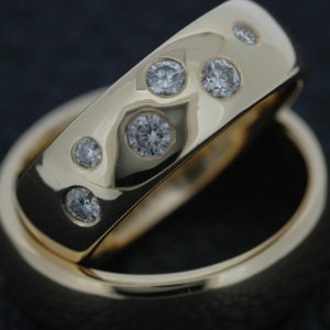 Nr 2287 kraftig tofarvet, hamret, afrundet indvendig, brillant 0,03 ct wvs.